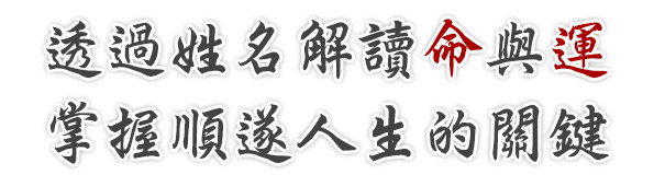 在人生的旅途裡,這個名字能為妳帶來什麼樣的好運?又有哪些該注意的地方?現在讓我們從妳的姓名,解讀妳的人生氣運格局!