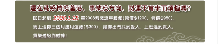 2008流年全運勢詳批 + 三個月流月運勢套餐原價