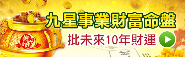 你此生的財庫有多大?何時能賺大錢?透過紫微命盤看穿你一生的財富命運,並給你雙流年運勢剖析,讓你掌握最佳賺錢好時機!